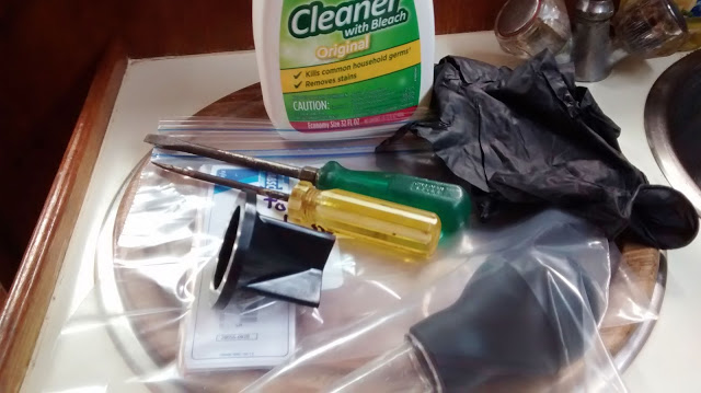 Turkey basters aren't just for Thanksgiving anymore, they can get liquid out of hard to reach spots, including the marine toilet when you need to change the joker valve. Don't worry, I made sure to label my baster with a warning >>Do Not Use On Turkeys<<.