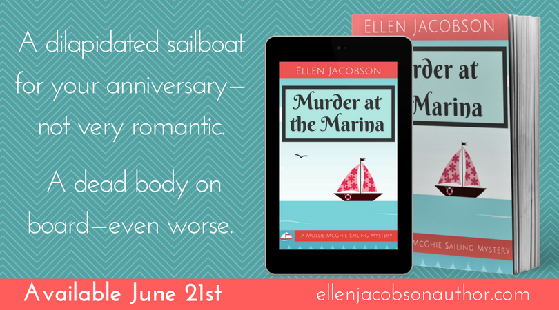 My cozy mystery, >>Murder at the Marina<<, will be released on June 21, 2018 and is now available for pre-order at Amazon (US) | Amazon (CA) | Amazon (UK) | Barnes & Noble | Kobo | Apple iBooks | Google Play