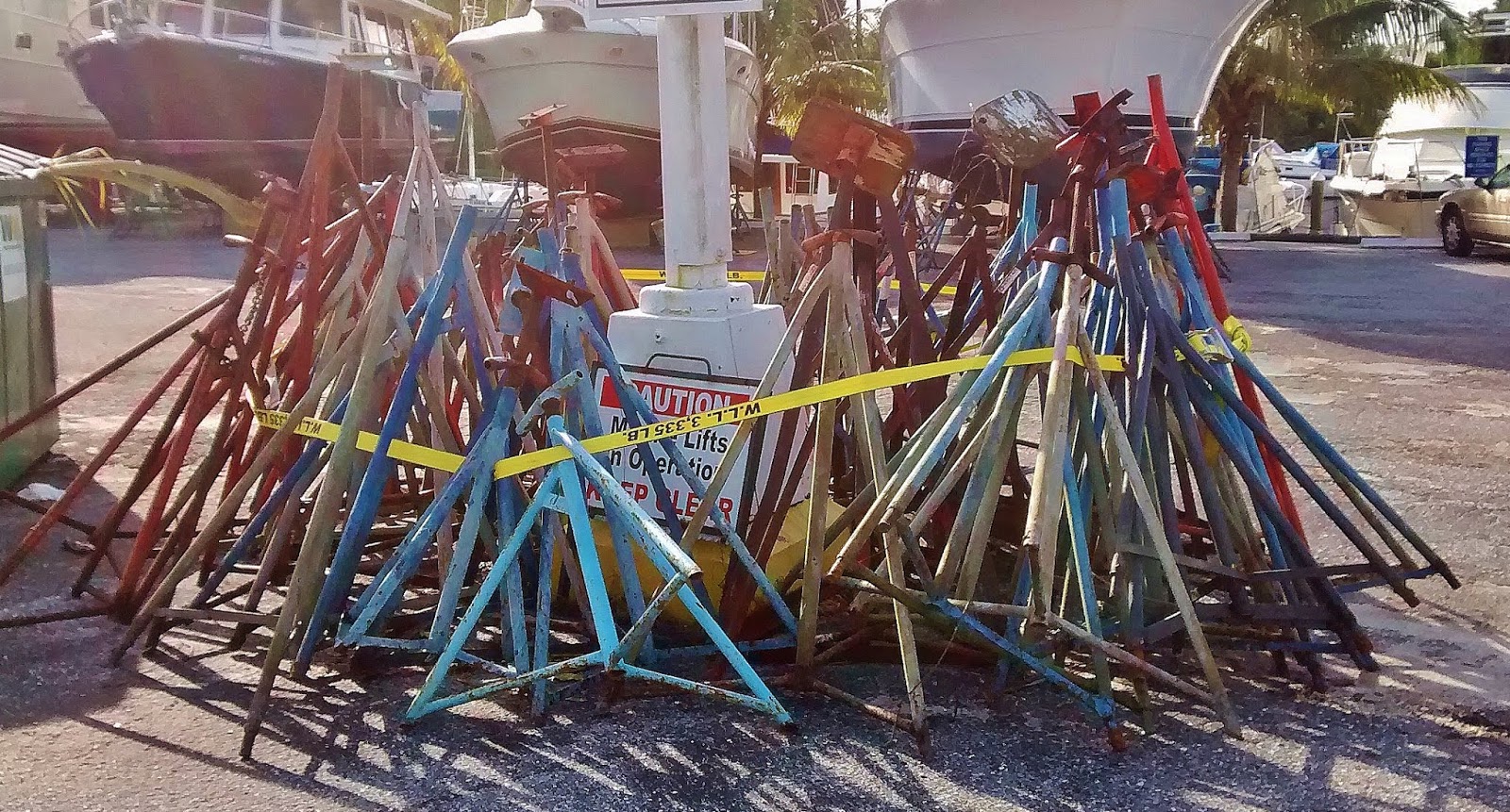 My original idea was to have the murderer use a jack stand to clobber someone over the head. If you're not a boat person, jack stands are metal supports that they use to prop boats up when they're on the hard.