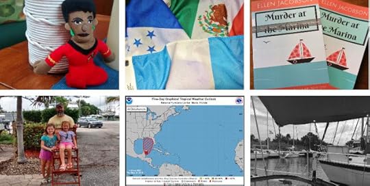 Clockwise from upper left: (1) The coolest gift ever - a Lt Uhura finger puppet!; (2) Courtesy flags; (3) Paperback proof copies from KDP and Ingram Spark; (4) A gloomy day at the marina; (5) Hurricane season starts early with TS Alberto; and (6) Our friend Ted with some of the cute boat kids at the marina.It's time for the monthly recap in numbers, a collection of odd tidbits that popped into my head as I reflected on the month past. As usual, the month just zipped by. It's hard to believe that 31 days can evaporate so quickly.