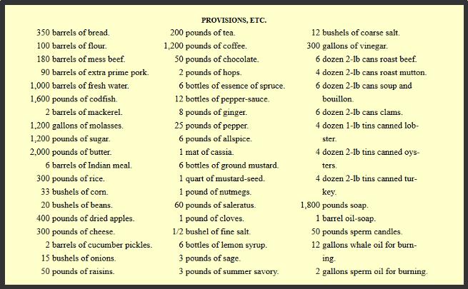 I love food. I love thinking about food. I love daydreaming about food. And I really love eating food. So this particular tidbit about the food provisions they would carry was right up my alley.
