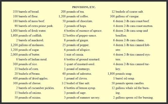 It's interesting to compare the whaling ship list of provisions to what we take when we're out cruising. In many ways it's similar - chocolate, coffee, canned meat, flour, sugar, onions, rice etc.