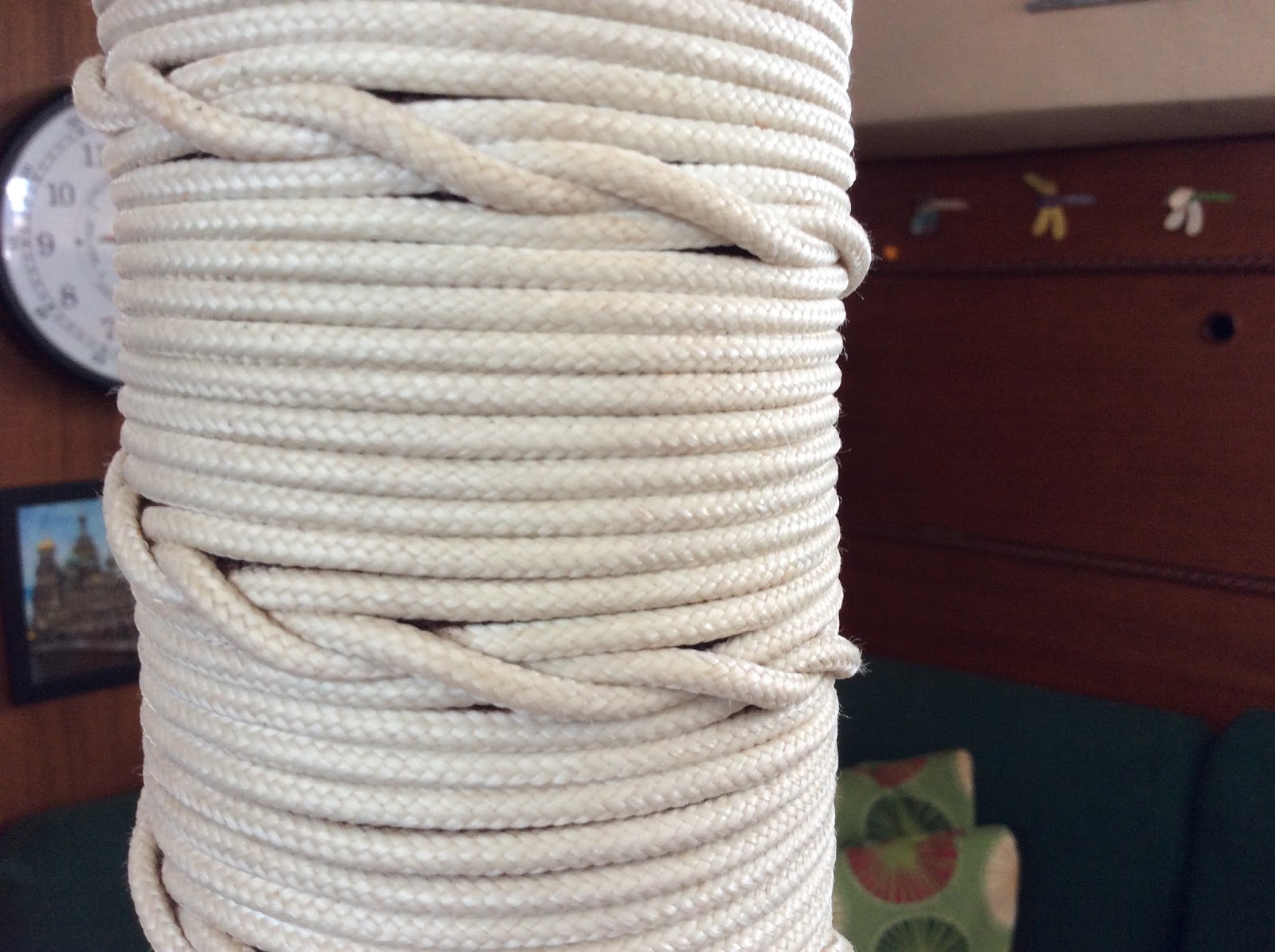 4 - This is a picture of our compression post. It's wrapped with cord to make it look pretty. The downside is that it gets all grimy and gross when people put their hands on it to keep their balance.