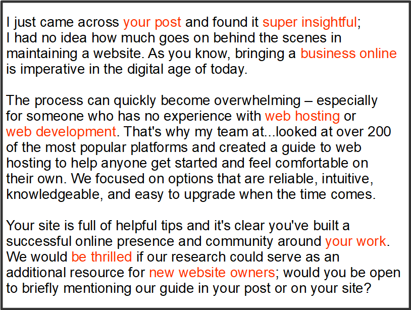 Although, maybe she did read that post as she didn't offer any sort of compensation for publicizing their web hosting guide. By the way, I'm pretty sure they make their money by recommending certain web-hosting services. Our share of that profit - zero. Unless, you count the fact that they'd be >>thrilled<< if we helped out as compensation.