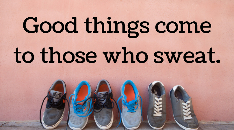 Now that I'm back inside next to the air conditioning, here's what I want to know - do good things come to those who sweat? At first, I thought the sweating was good. I was shedding calories left and right. I could see them flying off my body as I wiped sweat off of my face.
