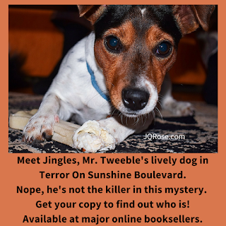 Jingles, a star in the bookBACK OF THE BOOK: Terror on Sunshine Boulevard by J.Q. Rose