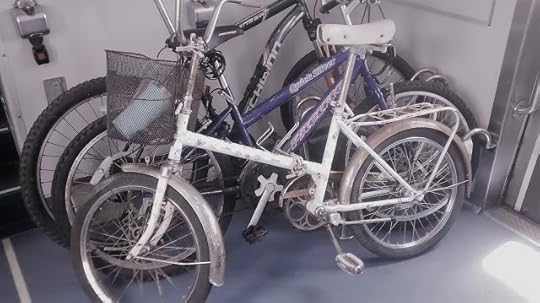 Tri-Rail is bike friendly. There are racks in each compartment to stow your ride. I put a filter on this one too, but I can't remember its name. So, I'm going to call it the Gertrude filter. My bike is the one in front. You might recall that I plastered it with Star Wars stickers. They've faded in the sun. That makes me sad.