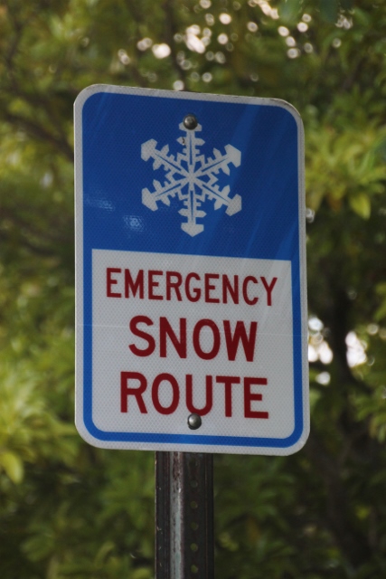 3 - Yes, the emergency snow route sign is from Marsh Harbour. They have a good sense of humor.