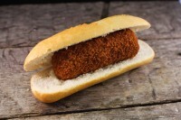 Broodje kroket: The ‘kroket’ is a deep-fried roll with meat ragout inside, covered in breadcrumbs. The original Dutch ‘kroket’ is made from beef or veal, but there are many different flavors like chicken satay, shrimps, goulash or even a vegetarian ‘kroket’. You can eat a ‘kroket’ as a snack, but most of the time they are served on sliced white bread or hamburger buns with mustard on the side—even fancy restaurants serve them. Caution: the ‘kroket’ can be extremely hot inside.