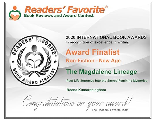 I just wanted to share some happy news with you. This week, I found out that The Magdalene Lineage has been recognised and has been awarded at the Readers' Favourite 2020 International Book Awards in the category of Non-Fiction - New Age. This has come as a pleasant surprise and I wanted to thank all of you for your support in purchasing this book, as well as reviewing this book. Reviews are like gold nuggets to authors... so I appreciate any and all reviews of my books very very much.