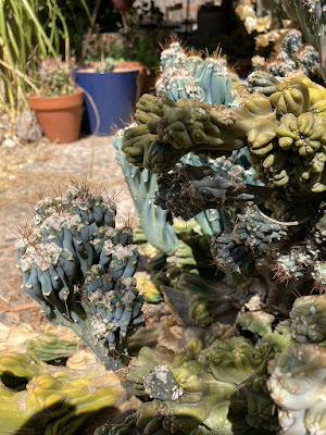 Cacti are a vegetal form of surrealism.Living sculpture that challenges not just our aesthetics, but ways of life.Once one bit me on the ass, leaving long vampire fangs, and giving me visionsof live on Mars.