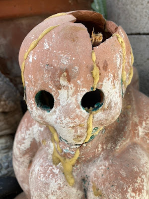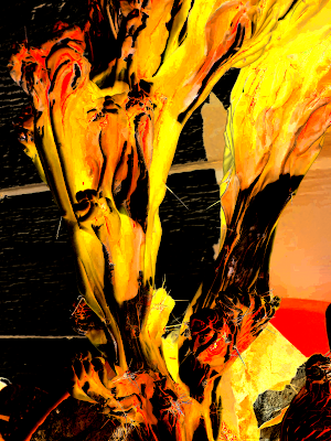 When it got too big forits split-open, plastic pot and fell over, it just kept growing, out and up.And now the killer summer chews on it, sucking away juices, burning away skin,changing colors, creating something new, intruding into our world, changing us.This may be the way we survive.