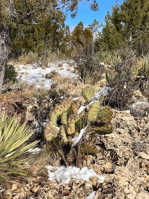 We stopped at Walnut Canyon. It was cold and snowy. The Island Trail was closed. No climbing down into the Sinagua cliff dwellings this time.