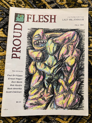 It was also pretty damn close to a Mayanoid dope-smoking astronaut on the upper left hand cover of a magazine called Proud Flesh: Fiction for the Last Millennium. Chris DeVito, the publisher, also used it on his letterhead.