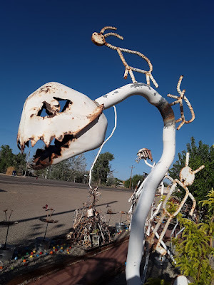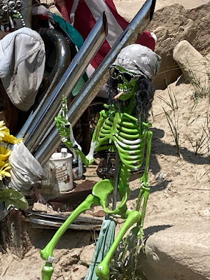 After slugging out a good chunk of writing, the brain can lock up and the body gets restless. When this happens, I get up and walk around; sometimes I cruise the garden, check out what the weird plants are up to; other times I walk up and down the hallway, into the kitchen and living room. There I can end up contemplating the masks and bookshelves, bringing back memories.