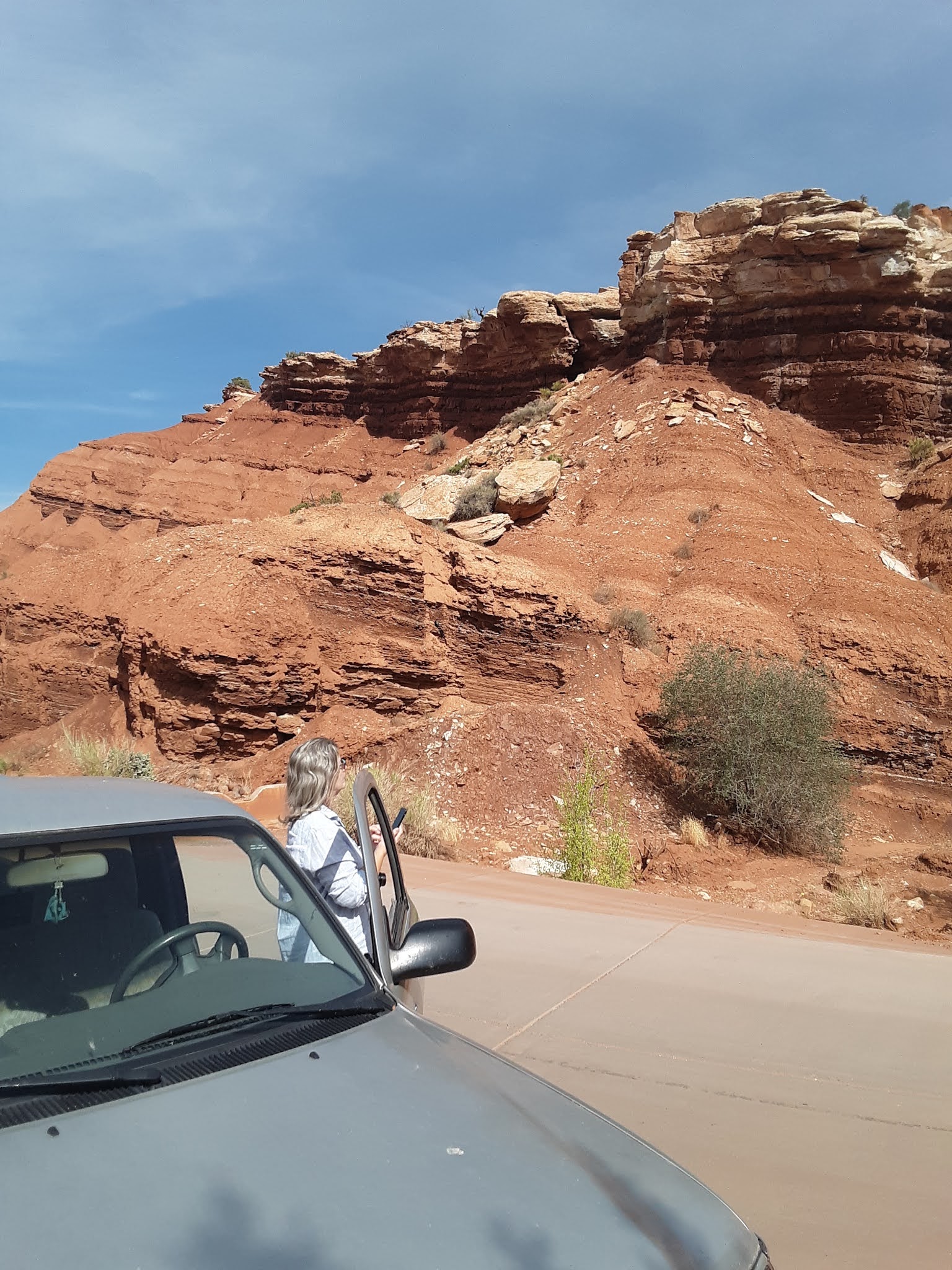 In our post-COVID-19 world, small towns are no longer ready to go at 6 AM. A local told us: “Tourists come here and expect to get coffee at eight o’clock in the morning.” The Wild Rabbit in Torry had a huge crowd of people waiting outside, and Austin’s Chuckwagon was crowded with Americano tourists, and no masks anywhere. We donned ours and grabbed some turnovers to go and a heap of napkins. This must be the “unprecedented tourism” we heard about in Kanab.