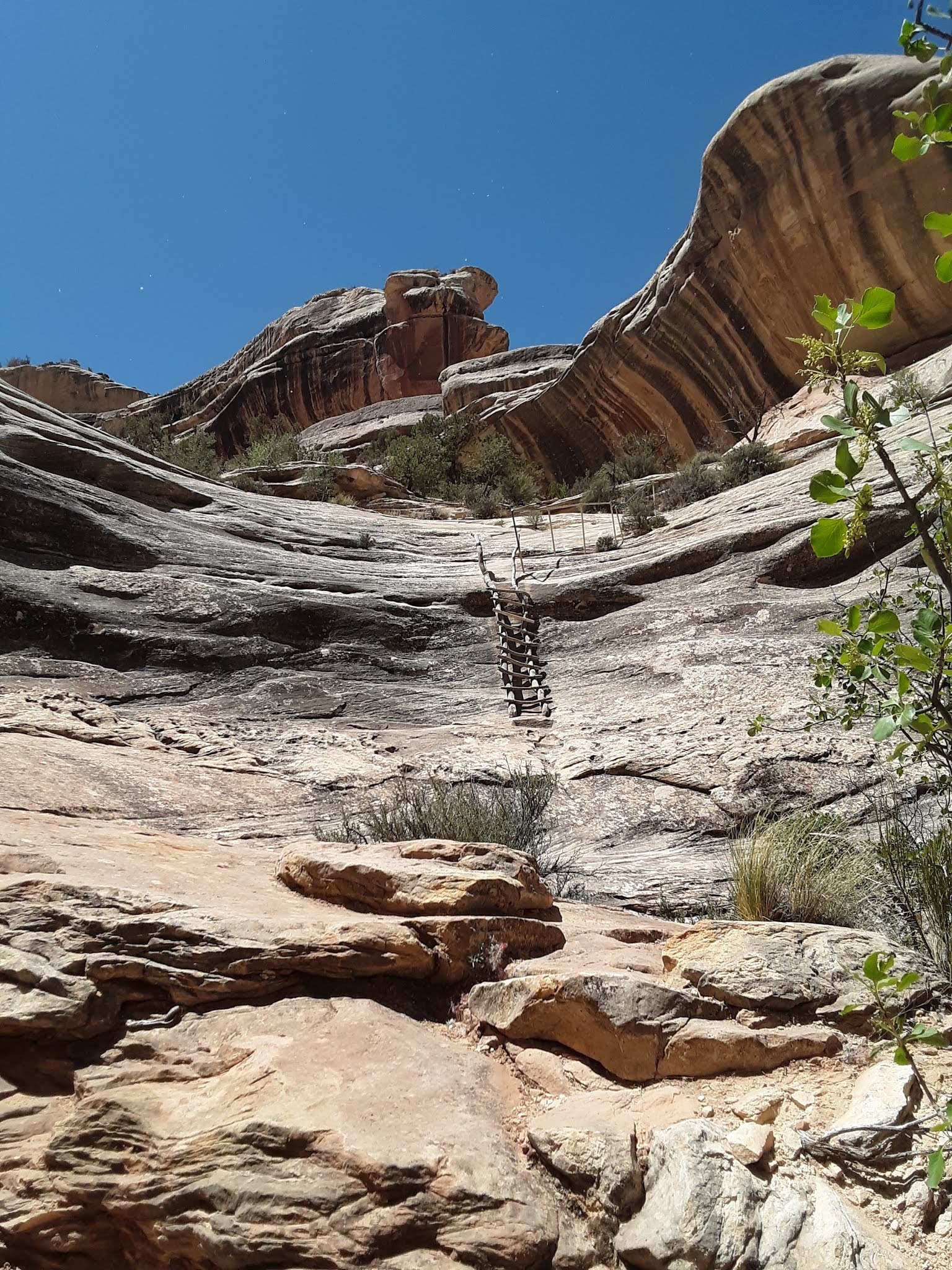 At Natural Bridges National Monument, we went all the way down the Sipapu Bridge Trail. Sipapu is a Hopi word for a hole in the bottom of a kiva, or pithouse, that symbolizes the portal from which their ancestors came into this world. It was a Journey to the Center of the Earth-type experience.