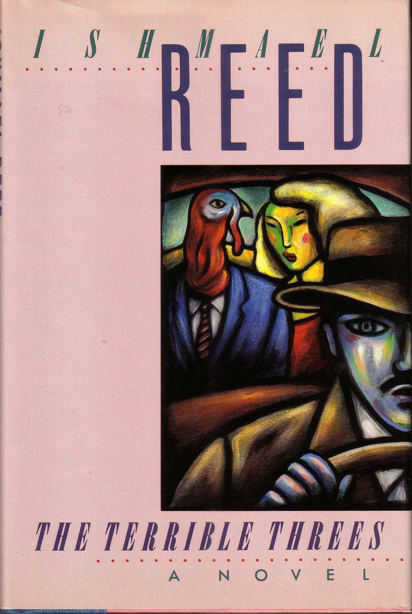 In preparation, I reread The Terrible Twos and The Terrible Threes, and couldn’t help noticing that these books, like all of Ishmael Reed’s fiction, aren’t structured like conventional fiction. We don’t see the shootouts, chases, and sex/love scenes that all good bestselling pageturners are supposed to have. The Terribles are more like jazz (a blurb from Max Roach says: “. . . the Charlie Parker of American fiction”), and visual art with variations on themes and information-rich, complex compositions like those of Hieronymous Bosch, Diego Rivera, and cartoonists like Jack Davis, Will Elder, Spain Rodriguez, and S. Clay Wilson.