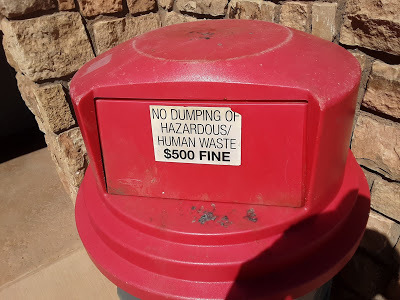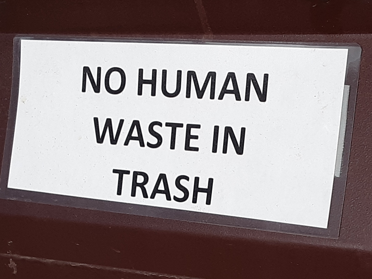 They also don’t want any human waste in their trash receptacles. There’s probably a story behind that. I keep imagining horror movie material.