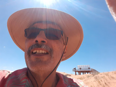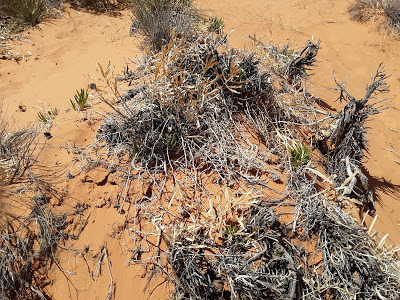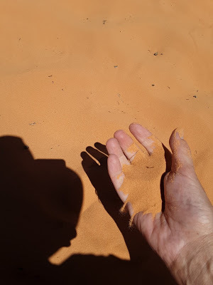 We drove out to Coral Pink Dunes where kids had brought their snowboards. We took pictures, but I couldn’t see my phone’s screen in the bright sunlight. It kept switching to selfie mode. Got some shots of me looking serious in a Martian-looking landscape.