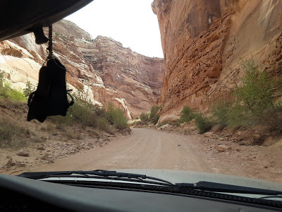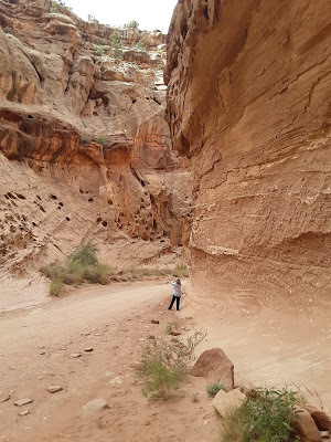 We sent most of the day hiking at Capitol Reef, where there were NO HUMAN WASTE IN TRASH stickers on the trash bins (yeah, it must be a thing). The otherworldly landscape was inspiring. Literally. Emily got ideas for scenes for her novel. Good. It’s working.