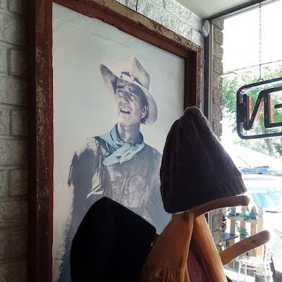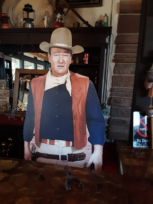 And we finally found a place to get breakfast, Duke’s Slickrock Grill, that’s also a shrine to John Wayne with its menu items named after his movies. San Juan de Hollywood is becoming the Patron Saint of Traveling Caucasians. His images is everywhere. He seems to be saying, “Don’t worry, pilgrim, I’ll protect you from these here natives.”