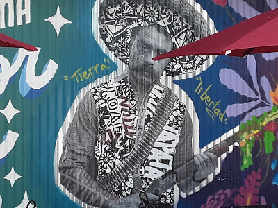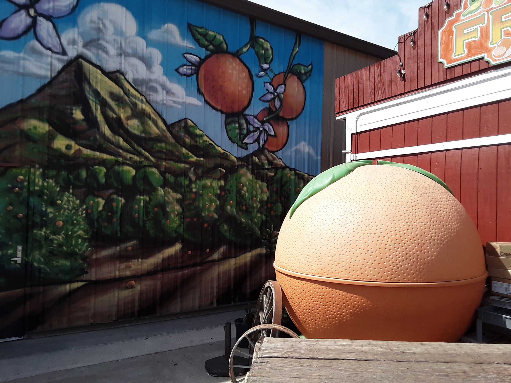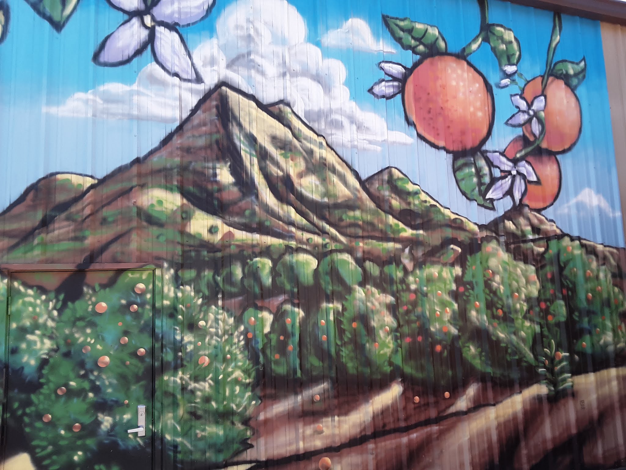 We stopped at Francisco’s Fruits in Filmore. It was festooned with murals we just had to photograph. We got some of the fresh edibles, and I grabbed a bottle of habanero hot sauce, and some “Chili y Limon” peanuts.