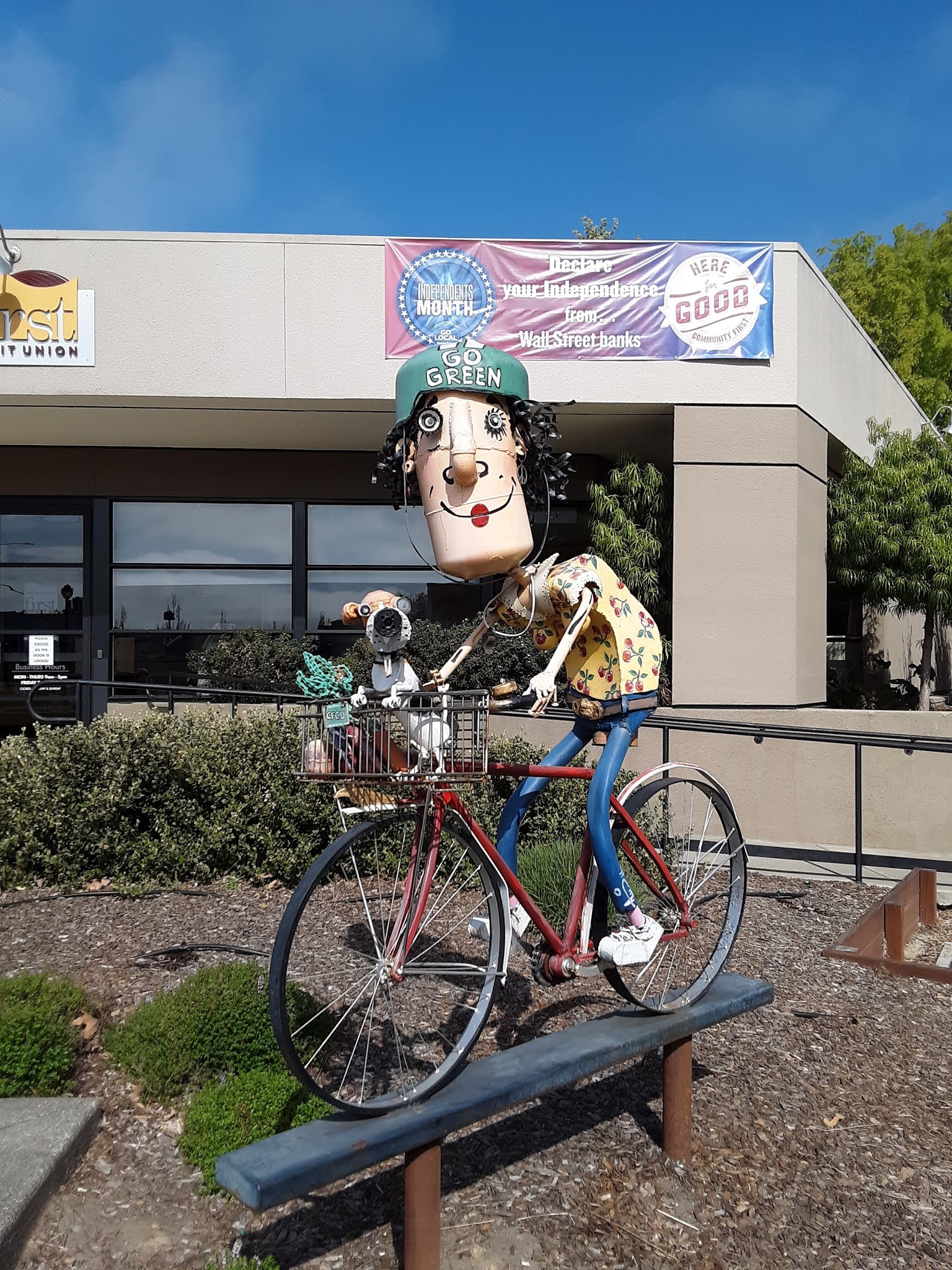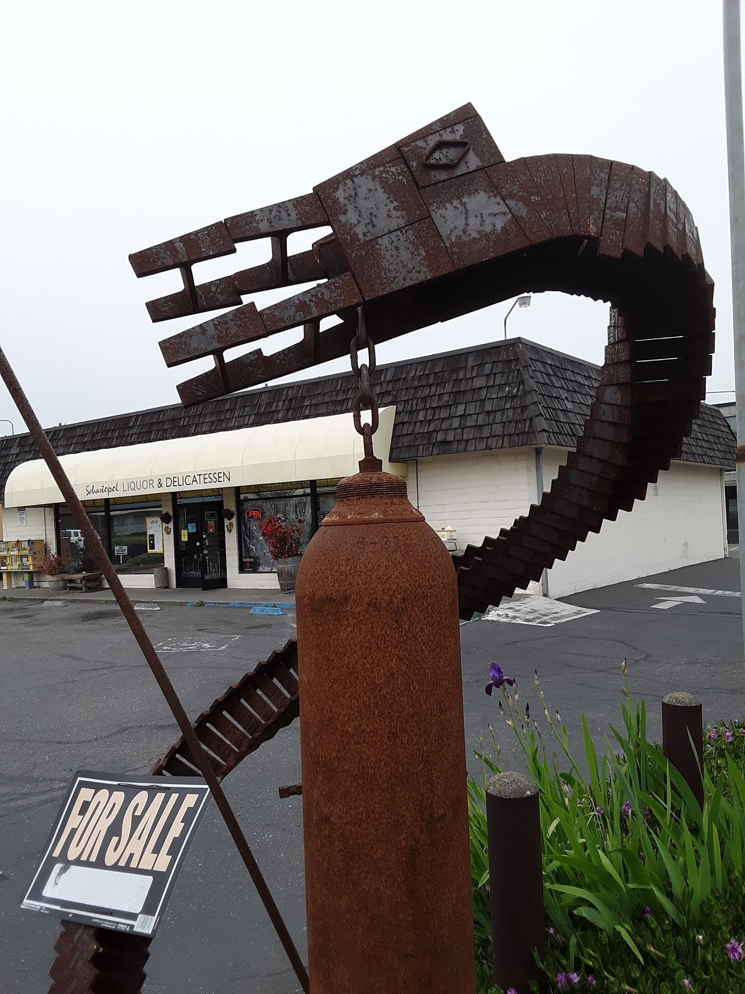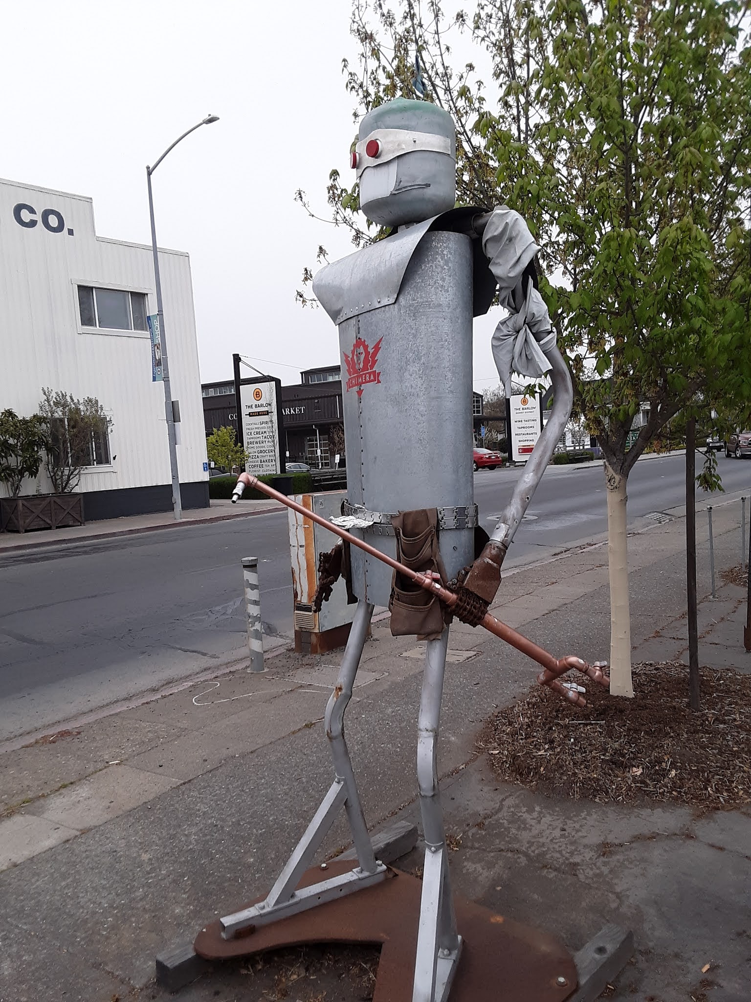 Under the cover of the marine layer, we made our way through Coatati and farmland to Sebastopol, that is brimming over with folk arty stuff. Robots and other weirdness in the streets.