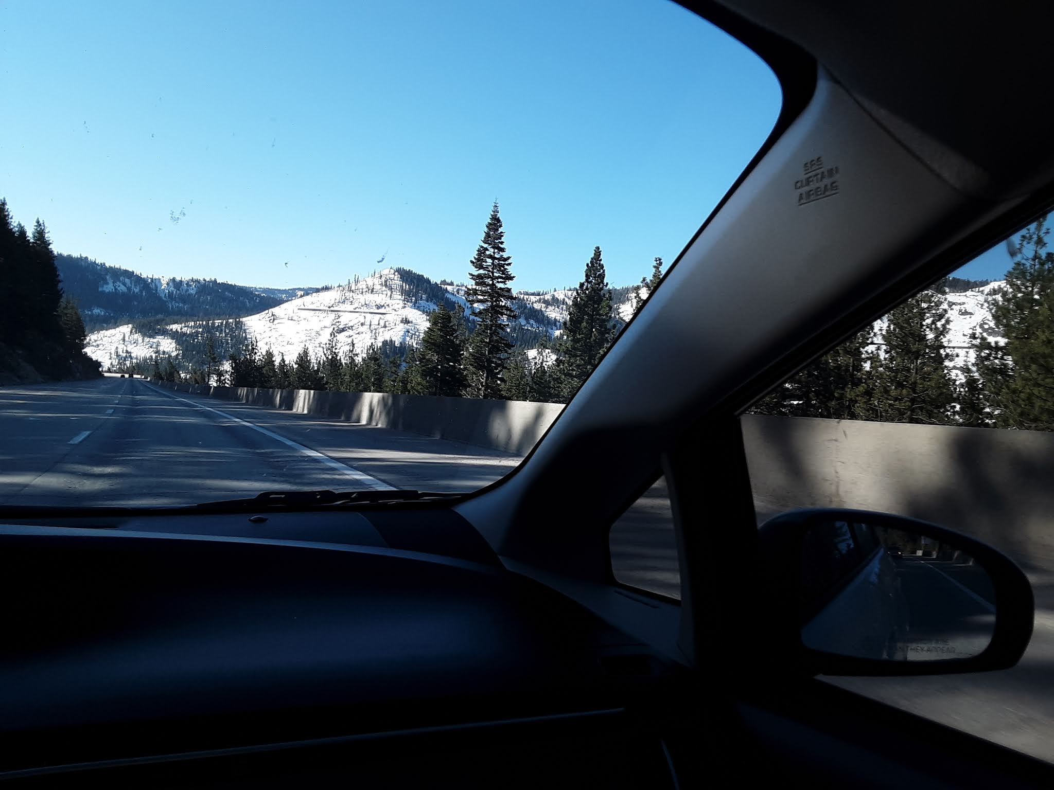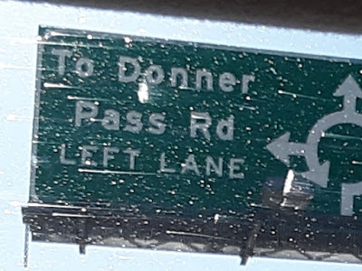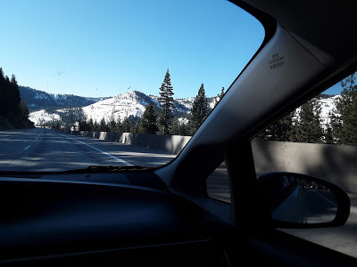 The news was full of protests as we got up early for a gonzo run from Vacaville to Las Vegas, past the rice paddies of Sacramento, into Gold Rush country, into the Sierras, past lakes, into snow, the Yuba River, and yes, Donner Pass, where there’s now a ski area.