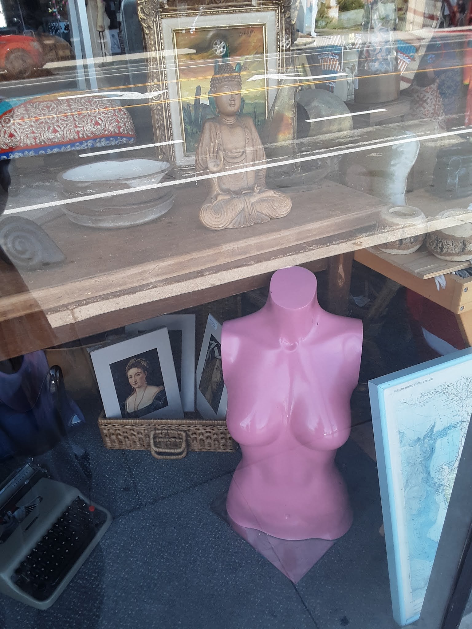Amid the “serious treeage” (as Mike put it) of Ventura we discovered that three thrift stores he wanted to show us were closed. Another pandemic phenomenon. “They just open when they show up,” we were told. Downtown was closed off to cars and converted for masked shopping and outdoor street dining. Adjustments have been made.