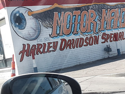 Instead of going back the way we came, we took the Old West Highway. With the exception of images on some tacky signs, anything Old West was long gone. It was all shopping centers, bar/restaurants (with more bikers), motels, trailer parks, abandoned businesses that got more franchise contemporary as we got into Mesa and met up with the light rail.