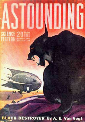 Though Alien is considered to be inspired by his story“Black Destroyer” part of his novel Voyage of the Space Beagle--20th Century Fox paid him a $50,000 out-of-court settlement--themedia hasn’t discovered him, yet. (Emily reminded me that another Space Beagle story "Discord in Scarlet" also inspired Alien and was part of the lawsuit.)