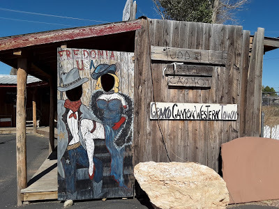 Then we left Sedona, go onto the 89A, and in Flagstaff, to our horror, discover that the cool gas station with the metal dinosaurs and other statues was abandoned and fenced off. A lot of our favorite places are being closed down. Whither goest thou, Aztlán?