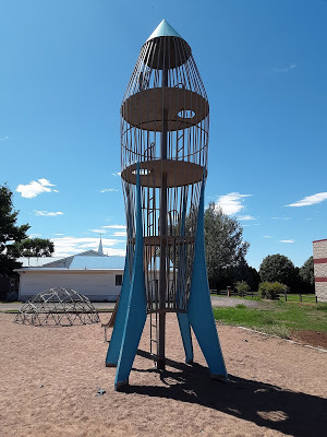 There was no sign of snow in Snowflake, Arizona, but we did find a rocketship jungle gym. It triggered sci-fi memories. At my grade school the jungle gym was a dome on top of a dome. We had to use our imaginations to make it into a rocketship.