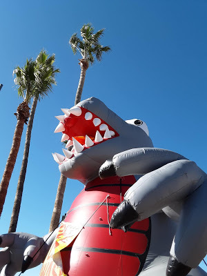The inflatable dinosaur, toothy mouth wide open in a silent scream, tried to attract business to a gigantic car wash. It made me smile. I took a picture. Put it on Facebook and Twitter.