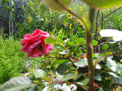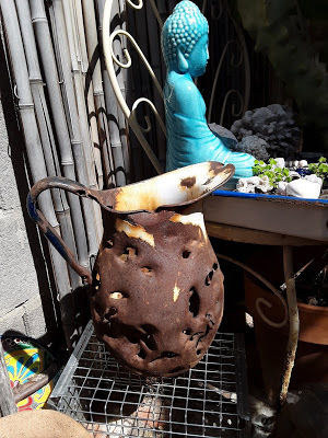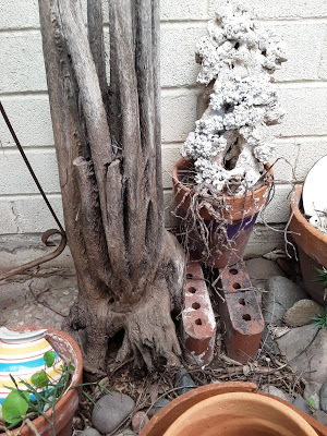 But now, and then, the weather gets too nice to shuffle around inside, so I go out into yards, that here at Hacienda Hogan, are the gardens of my wife, the fabulous Emily Devenport. They are chock full of plants, artifacts, and geological samples. Wandering among them fires my imagination. Often, I end up grabbing my phone, and taking pictures.