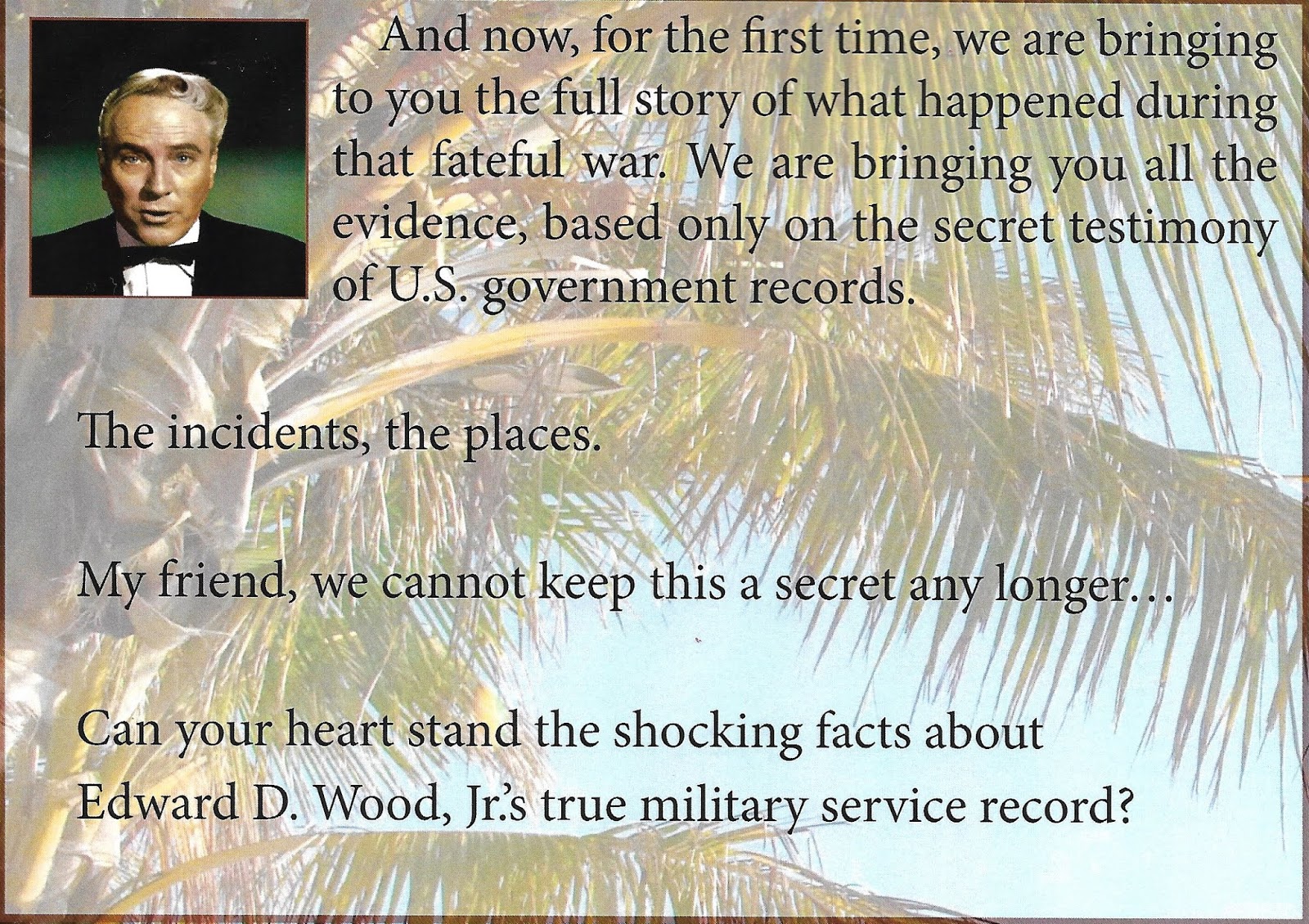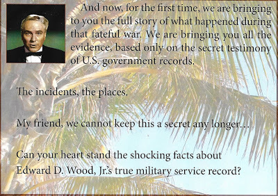 All this doesn't mean that Unknown Warisn't a fascinating read, and a valuable addition to the Ed Wood bookshelf. It fills the gaps in the story, and even makes it more interesting. Pontolillo used, and reproduces news clippings and Wood's medical and military records, and truths about the man, and World War Two, become self-evident.