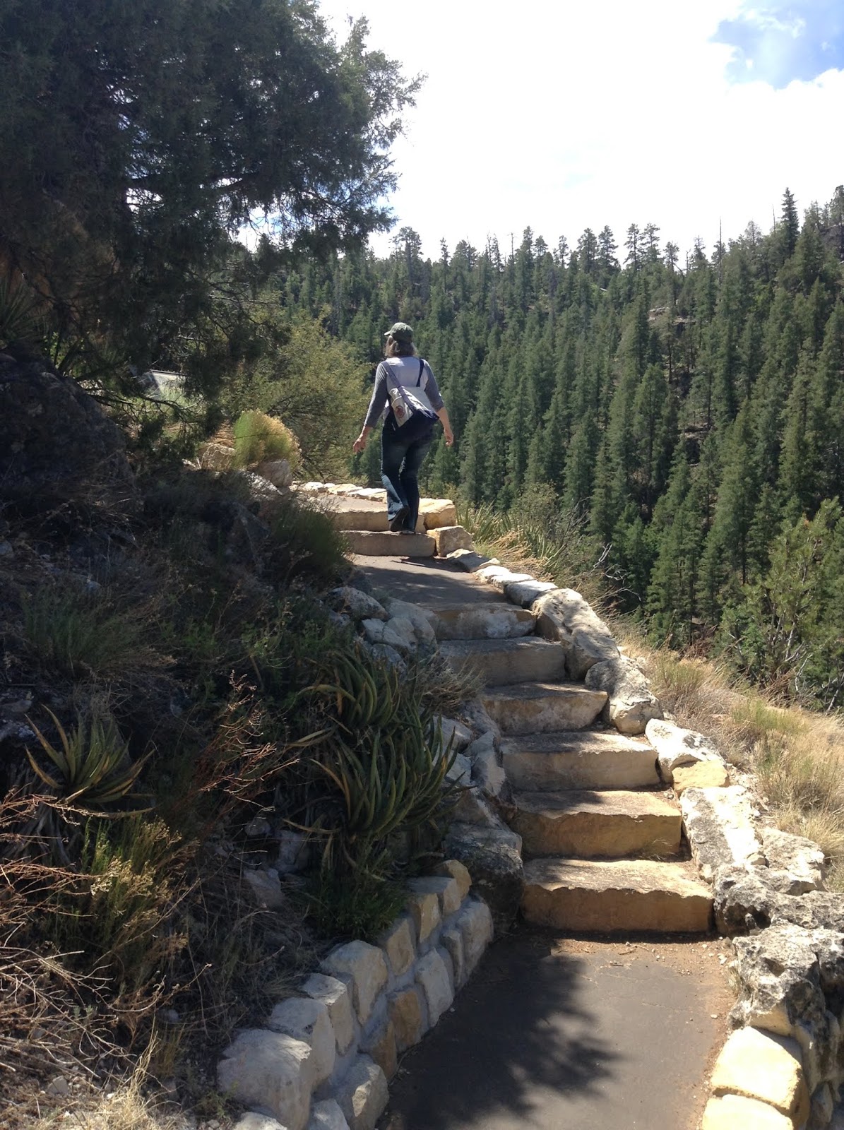 Giant squirrels scurried around the Walnut Canyon National Monument. I got a Lifetime Interagency Senior Pass—the National Parks and Monuments are now mine! We also climbed down into the Sinagua ruins, remembering Arizona's original cultures. As we left, a raven big enough to carry off small children lurked around the parking lot.