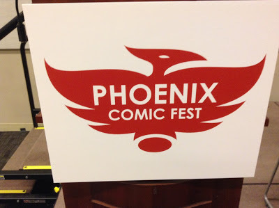 Emily and I did a park-and-ride on the light rail, from which Phoenix looks like a sunny near future from a pre-Blade Runnersci-fi production, complete with lots of shiny, colorful new apartment complexes to house the workers for the tech industries that have not quite moved in yet. The Comic Fest is the manifestation of the culture of that brave new world.