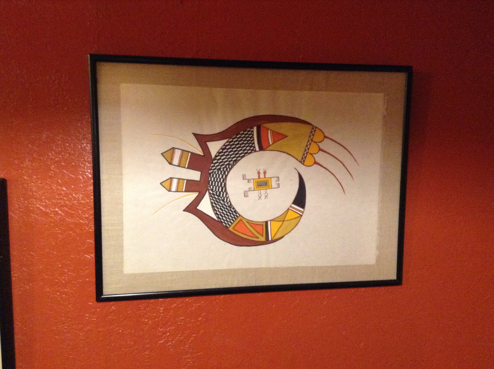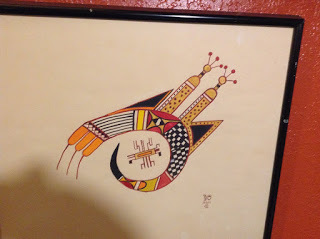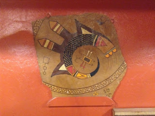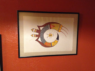 I took pictures of some Kandinskyoid Indian art – one that was signed with glyph-like symbols, the word HOPI, and the copyright sign. And the men's room had gone 21st century with waterless urinals and air blade hand dryers.