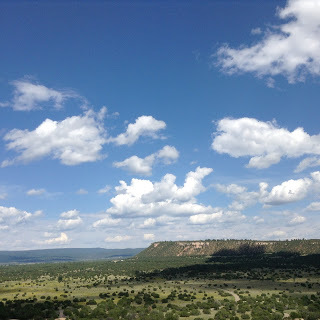 Clouds swirled all over the sky as we hit the El Morro National Monument. They got thicker as we climbed up to the ruins of the Atsinna pueblo. A raven warned us that we could be struck my lightning. There was thunder. And lightning in the distance, getting closer. We took the raven's advice, and left.