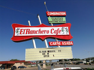 On the way we saw interesting signs: SOCORRO'S RESTAURANT SPANISH FOOD/PIZZA and MAMACITA'S PIZZARIA. Pizza was a big favorite in this part of the country. And what did they mean Spanishfood in New Mexico?
