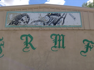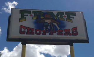 Next to the motel was a place called FRMF Choppers. With an impressive sign and murals. Some people were hanging out in front of the biggest mural. When I asked if we could take pictures, a paternal figure ordered everyone to move out of the way, and they did. They looked more like a family unit than a gang. And they were what they call in New Mexico, Hispanos.