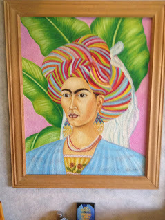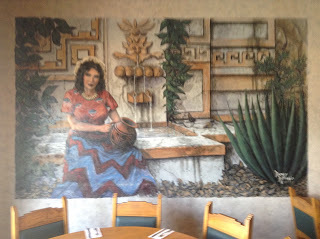 Tequila's, the restaurant attached to the motel, also had a nice sign – though in a different style and sensibility. I took a picture of it before we decided to have dinner there. I wasn't expecting much from a motel eatery, but the food was excellent! And they had two impressive murals and a Frida portrait.