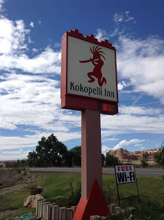 We stood at the Kokopelli Inn in Bluff, Utah, established in 650 A.D.(the town, not the motel). The password for wi-fi was in Navajo.