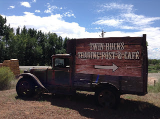 Once again we were in Indian territory. The word Navajo, and complicated native names, were on all the signs. As Navajo began to be replaced with Apache, we filled up at the Red Mesa Express Gas Station. It had little TVs on the gas pumps, tuned to the Bloomberg network. I guess the locals like to keep up with the financial news