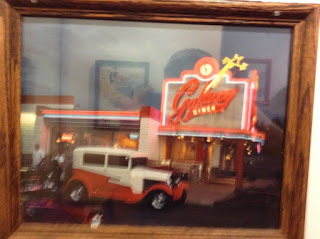 The next morning, there were problems with my Chicanonautica post getting up on La Bloga. Or maybe it was just me tripping on Google's security protocols. One way or another, it went up just before we left the motel, into the rain, for a rock 'n' roll breakfast at the Galaxy Diner.