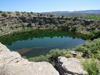 Our first spontaneous stop was at Montezuma's Well. It's actually an ancient sinkhole. Long before Montezuma was born, the Sinagua built summer and winter cliff dwellings around the edges and tapped it to irrigate their crops with the arsenic-rich waters where only a few hardy life-forms found nowhere else in the world survive.