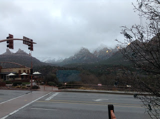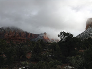 When they're wet, the colors of the red rocks become more intense. Clouds brush the mountains – Shangri-La-ish. Cloudy with a chance of yeti.