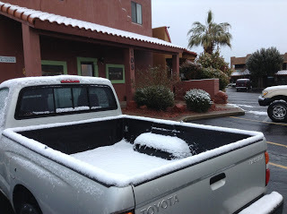 It does snow in Arizona.There are worlds beyond Phoenix, Arizona beyond the Valley of the Sun, up north, in the mountains, where it gets really cold and snows.
